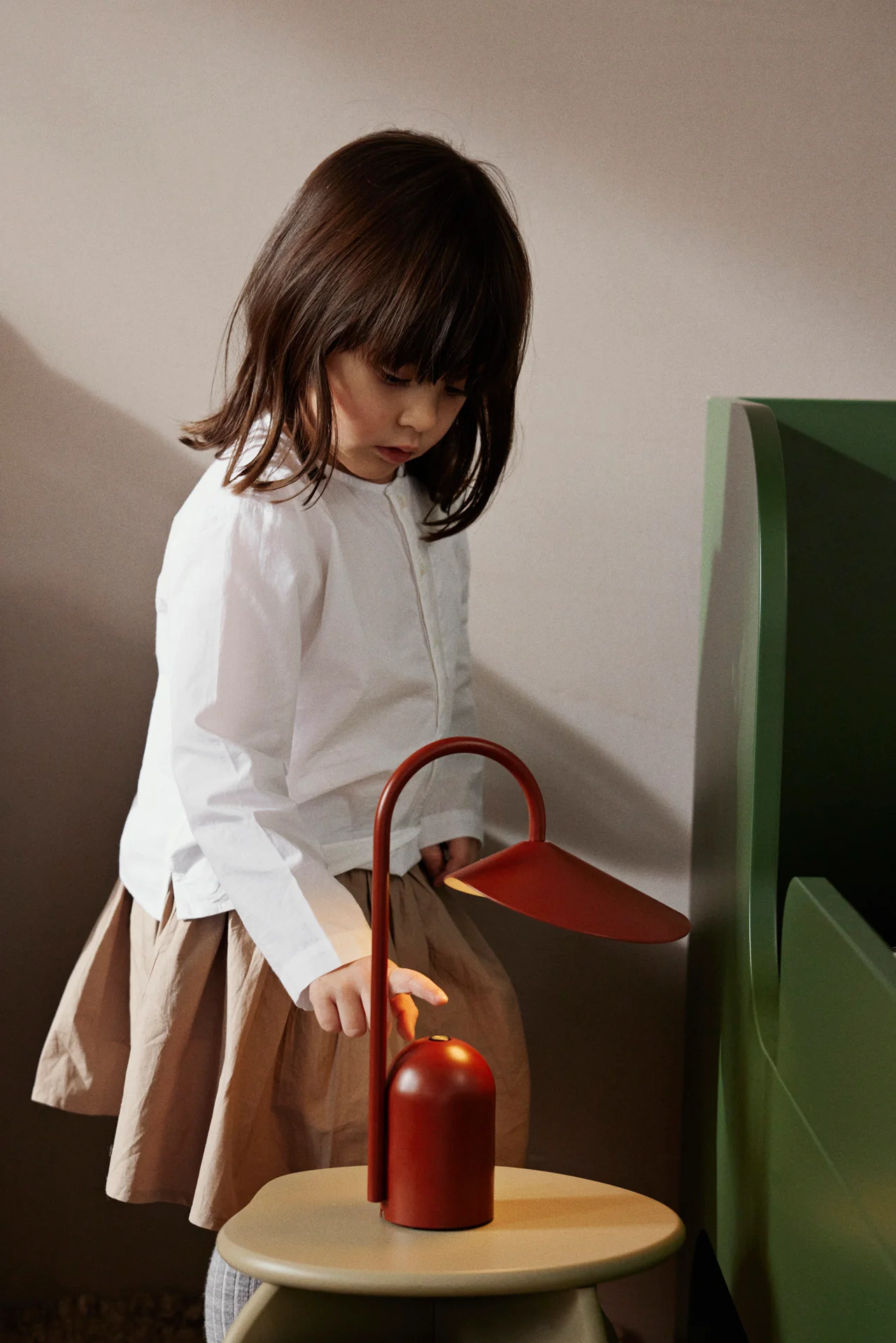 The Arum Portable Lamp is a versatile and mobile lighting solution. This petite, portable LED lamp is rechargeable via USB-C, allowing you to create a cozy setting anywhere you go. While it echoes the shape of the Arum Table Lamp, this portable version is crafted entirely from powder-coated iron and aluminium, offering durability and a sleek finish. Its design maintains the collection's signature elegance and balance, with its petal-shaped shade appearing to float from the stem-like rod. The lamp features a three-step touch dimmer, providing adjustable ambient lighting to suit your needs.