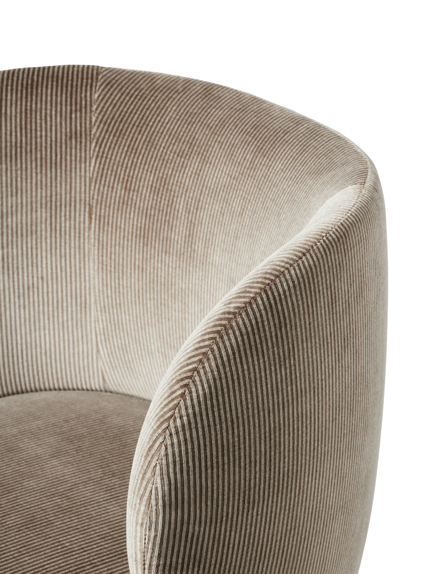 The Rico collection welcomes curves and volumes into a classic design defined by soft lines and an embracing expression. Featuring a functional swivel as the base, the Rico Dining Chair presents a refined addition to the Rico family. Place it around the dining table and offer your guests a comfortable, inviting seat during long dinner parties, or use it as a desk chair in your own home or at the office. The Italian-made cotton velvet features a two-tone Devoré pattern, subtly echoing fine corduroy. As light moves across the surface, the fabric reveals a refined, dynamic contrast. While cotton velvet is a naturally delicate material, the stain-repellent finish helps preserve its elegant appearance over time.