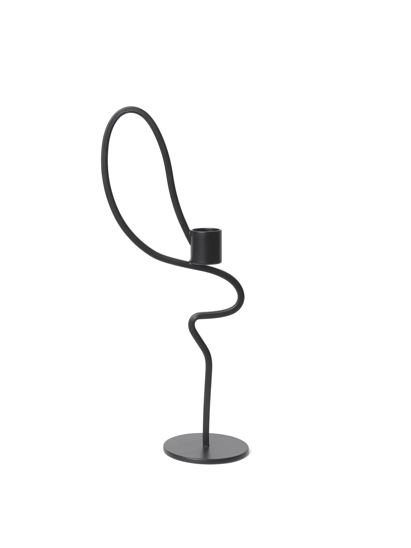As if frozen mid-dance, the Valse Candle Holder has a fluid and wavy form. Taking inspiration from the graceful movements of the Waltz dance, this piece is crafted from powder-coated iron and has an elegant shape, featuring a curved metal rod that invites you to hold and move the candle holder around with you.